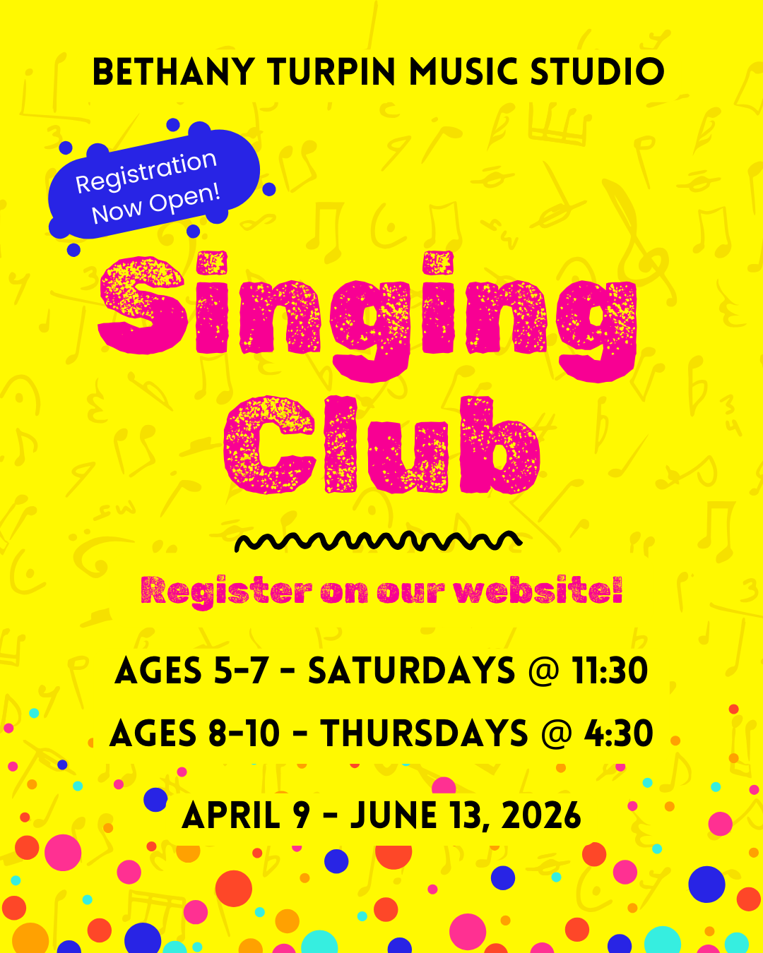 Before you register, take a look at our Studio Handbook for Singing Club and make sure you’re cool with all the policies!